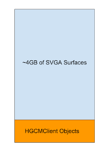 Once heap spray is done, use the out of bound read to leak memory relative to the surfaces starting from SVGA3D_MAX_SURFACE_IDS – 1. If any HGCMClient is found, stop the search, else keep going.